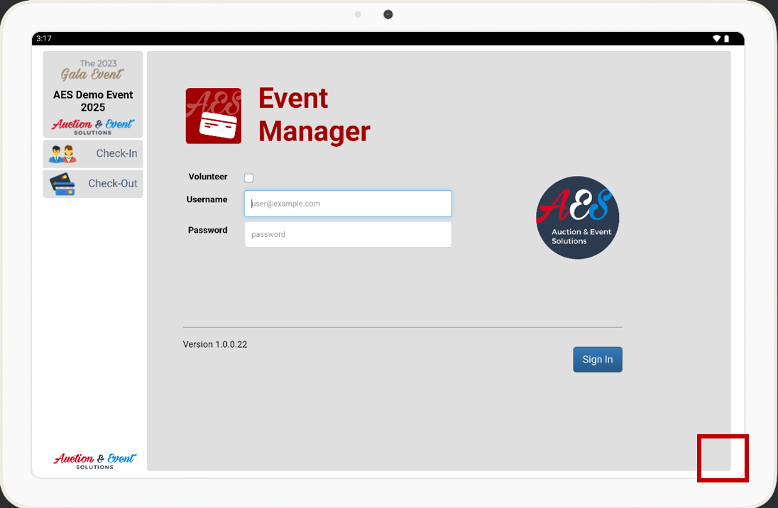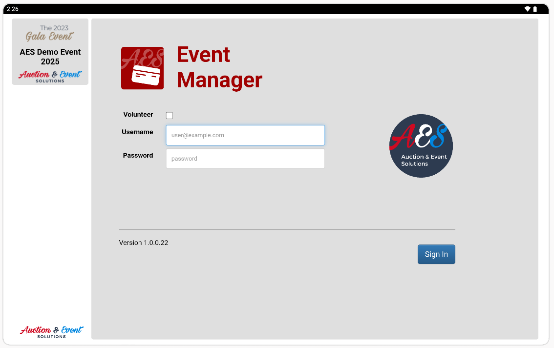 - For Volunteers: Check the Volunteer box, enter their first and last name, and use password AES2025.