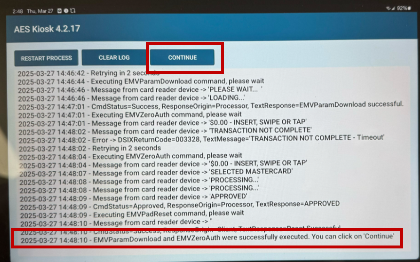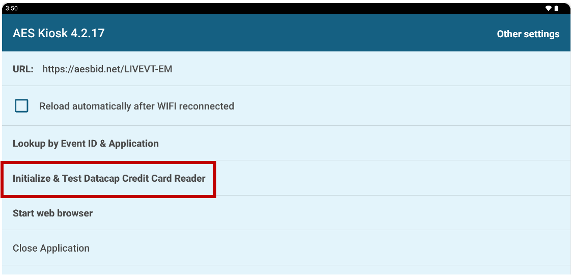 - Wait for the credit card reader to initialize. When prompted, insert or tap a credit card to validate the device (card data is discarded).