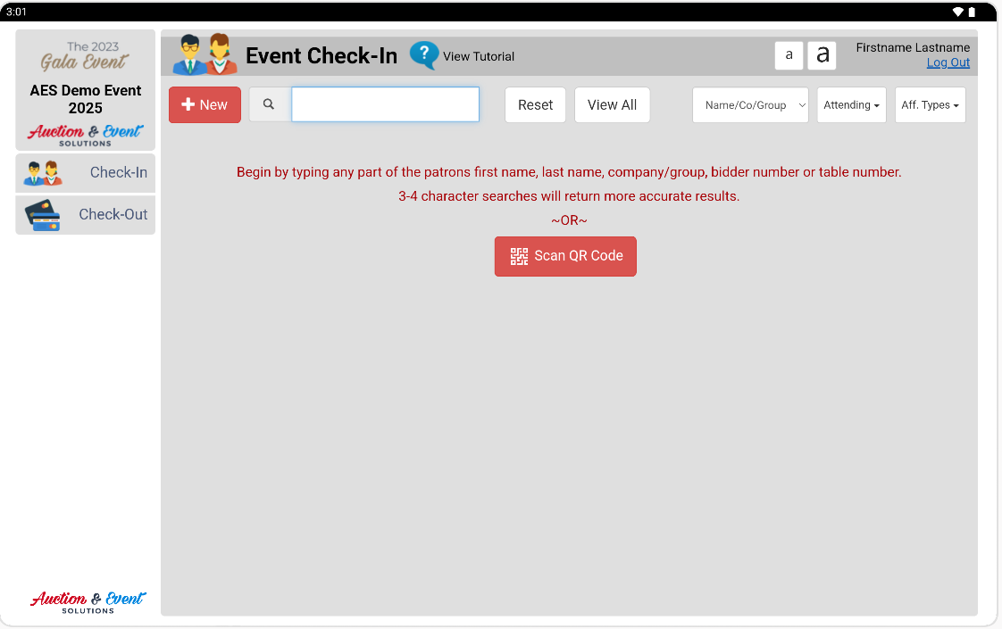 - You'll now see the Check-In screen and are ready to begin. For detailed check-in instructions, see: Event Check-In Process