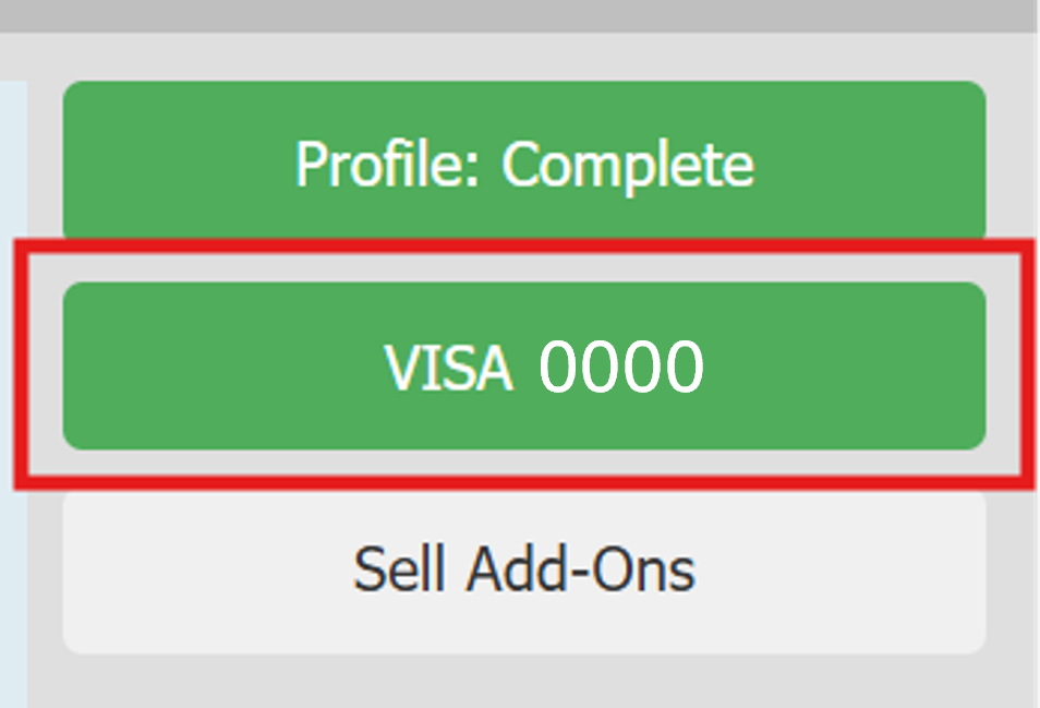 After the card is successfully added, the “No Card On File” button will turn green and display the card type along with the last four digits.
