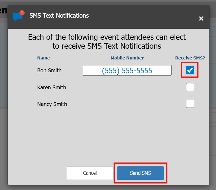 Ask the contributor if they would like to receive SMS text notifications for the event.
