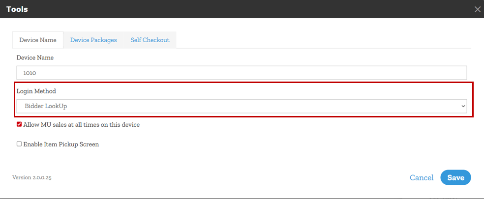 - Within the Tools menu, under Login Method, select Bidder Lookup and click save.