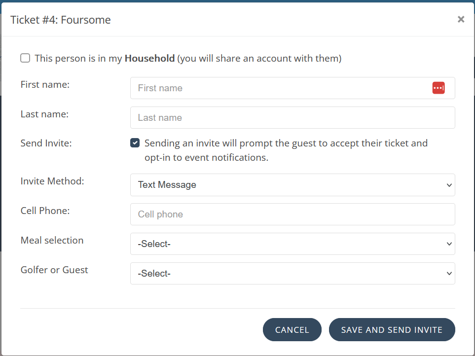 - Note that the meal selection here is Optional for Hosts, Required for attendees when accepting their ticket.