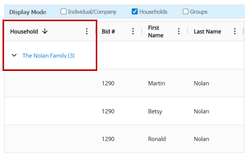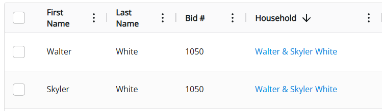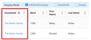 After creating the household, it appears in the household column on the contributors grid. Click the hyperlink to edit the household at any time.