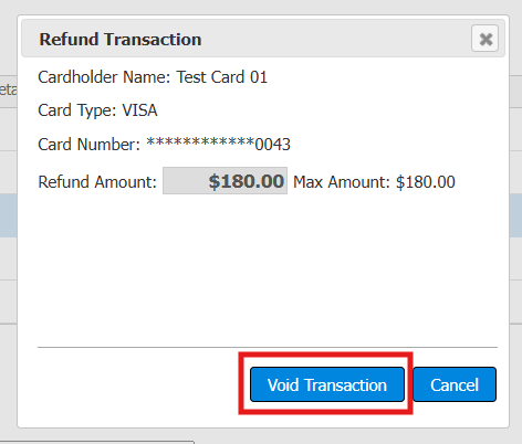 - A refund Transaction pop-up will appear. Click Void Transaction