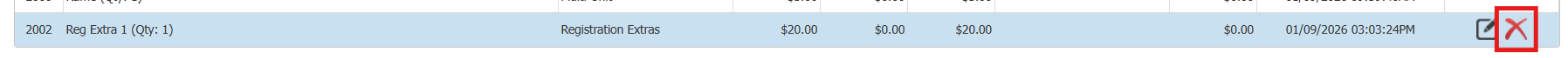 - A red 'X' will now appear to the far right of the purchase you removed from the payment in the previous steps. Click the red 'X' to delete the package.