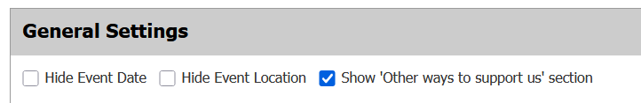 - New checkbox under general microsite settings for showing/hiding the "Other ways to support us" section.