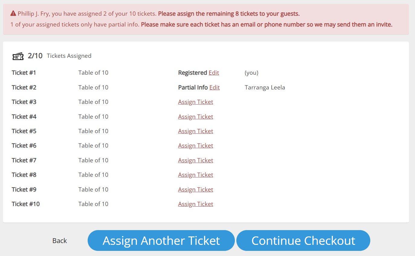 - Update guest names for their purchased tickets
