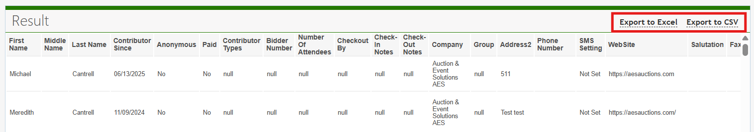 - Your data will populate in the Results box below. Click 'Export to Excel' or 'Export to CSV'. The report will download to your computer.