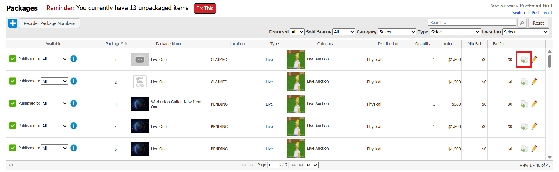 Live packages are the packages to be sold in the live auction portion of your event (if applicable). They cannot be bid on via Event Conductor, but can be viewed using the Live Preview feature.