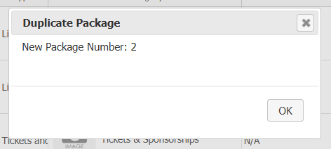 You will then receive another pop-up informing you of the package number for your duplicate package.
