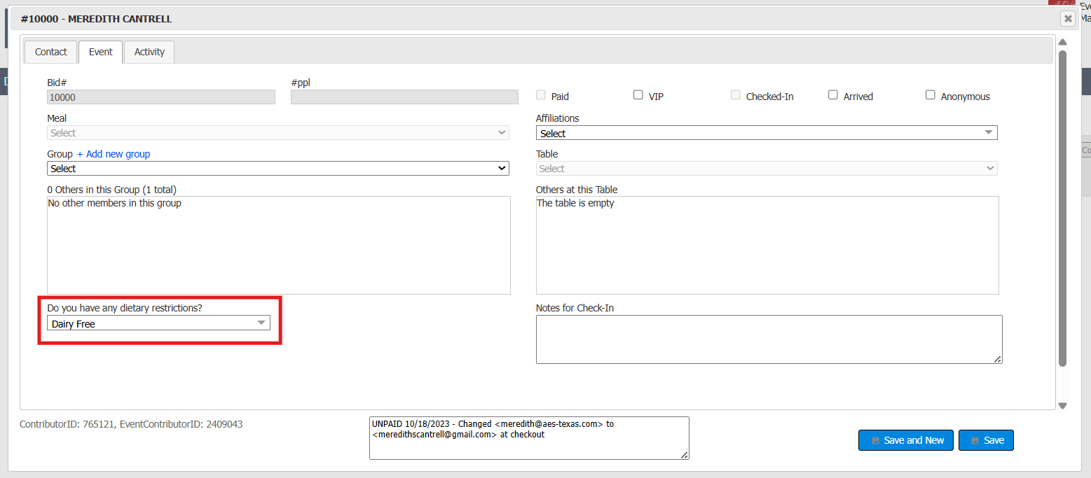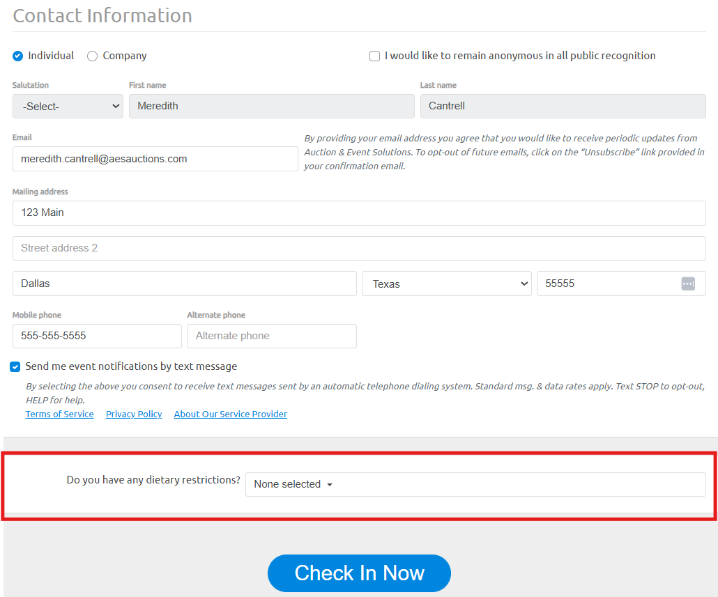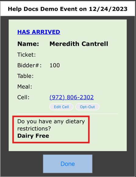 This is helpful for questions like dietary needs, t-shirt size, or other info staff may need to see quickly at check-in.