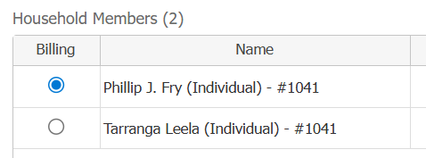 Invoice summaries now reflect household structure. Each household generates one section containing contact information for all members.