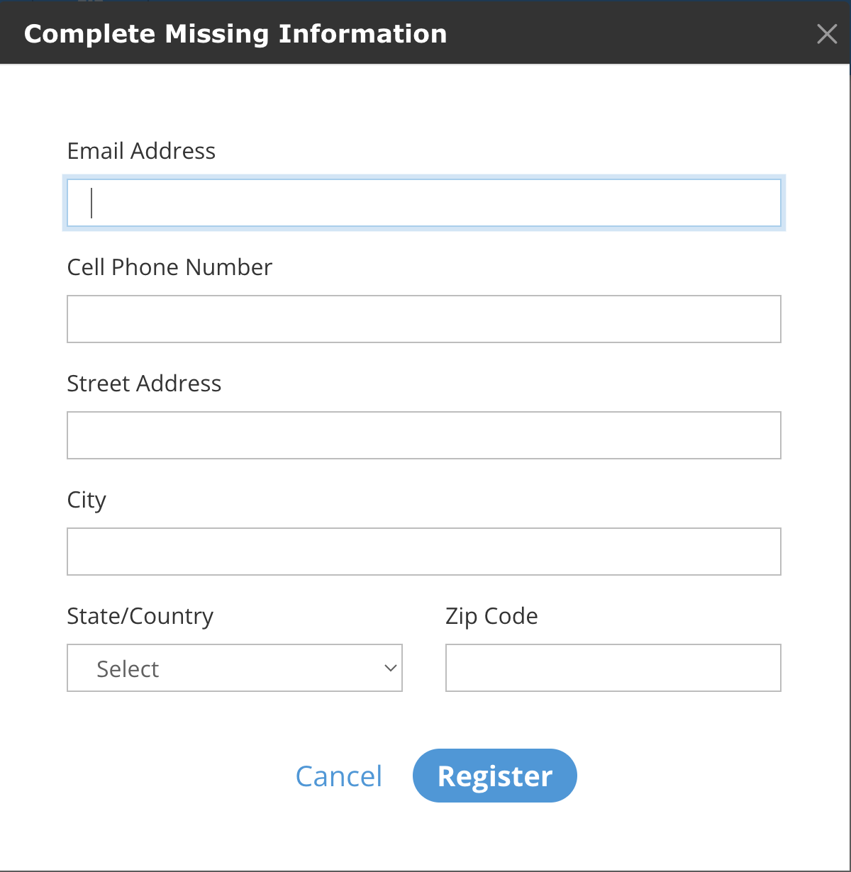 In the mobile bidding app, checkout verifies contact information completeness based on your "data required to complete registration" settings.